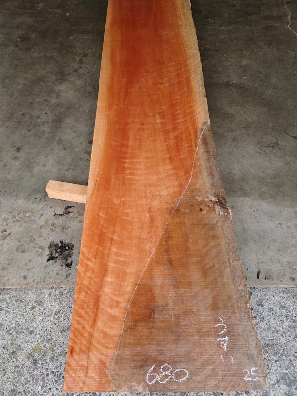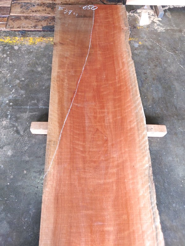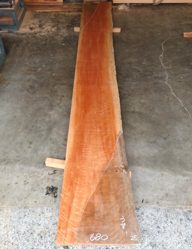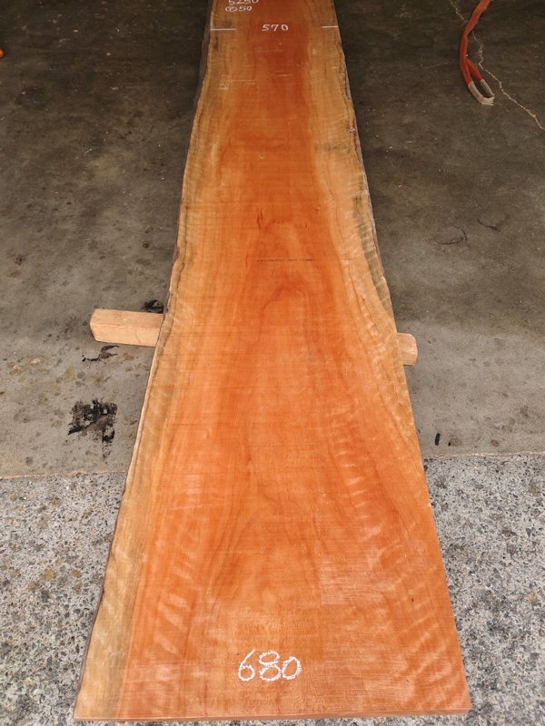 キレイな虎杢のでた片耳付きのアフリカンチェリー(ボセ)です。カウンターに最適です。干割れの多いアウトレット品です。【長さ】5250、【木表幅】620~570~680、【木裏幅】650~680、【厚み】50 【天然乾燥材】、【反り】多少あり、【節】なし、【割れ】干割れ多数、裏面端部の厚みが薄くなっている部分があります。 表面は製材したままの状態でザラザラのままです。 詳細画像や詳細寸法がご希望の場合、また表面仕上げ加工やテーブル、看板製作をご希望の場合はお問い合わせよりご連絡いただけましたらお見積りさせていただきます。 こちらの商品は大型商品になりますので、配送できない場合がございます。詳細はお問い合わせくださいませ。