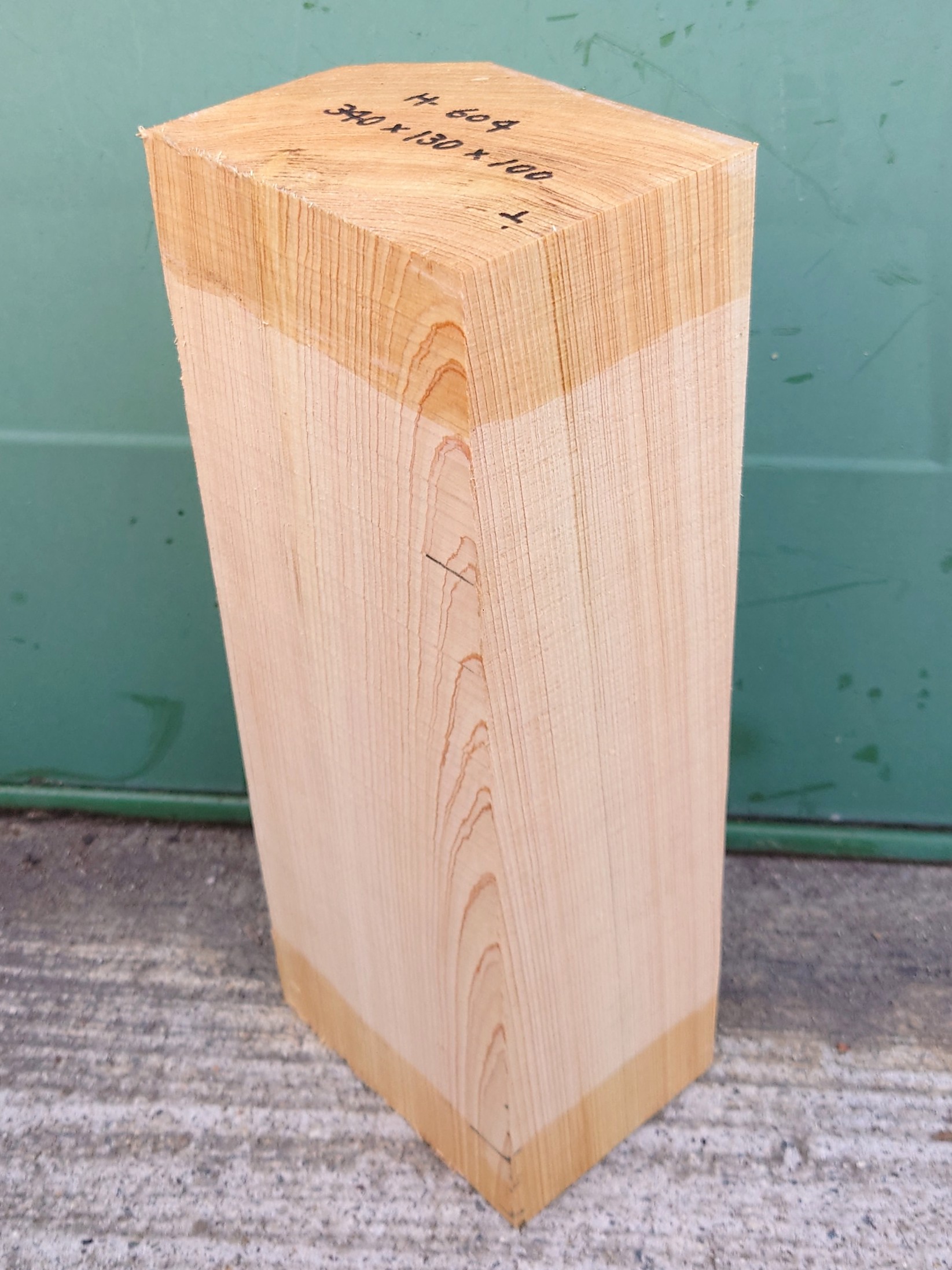 桧の柾目の綺麗な彫刻用材です。【長さ】340、【幅】130、【厚み】100。 【天然乾燥材】、【反り】なし【節】なし【割れ】なし。
