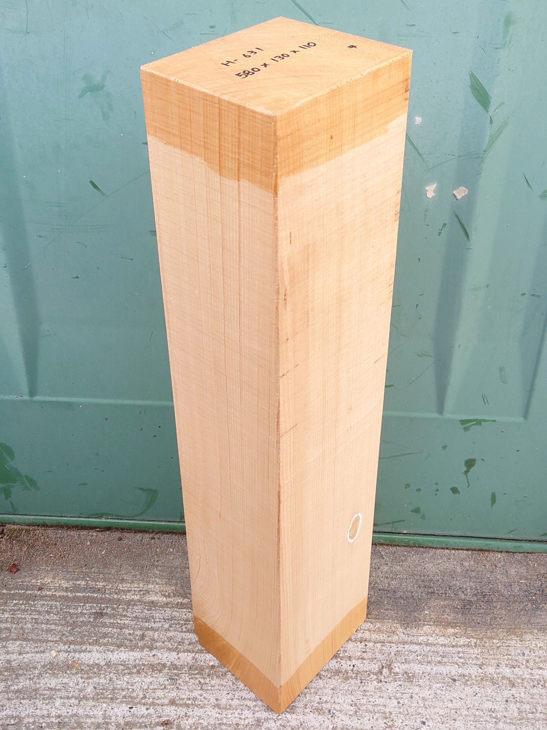 木曽桧の目の細かい良材の彫刻用材です。【長さ】580、【幅】130、【厚み】110。 【天然乾燥材】、【反り】なし、【節】なし、【割れ】なし。裏面に製材時の小さい傷あり。 木口面に割れ止めが塗ってあります。削れば取れます。