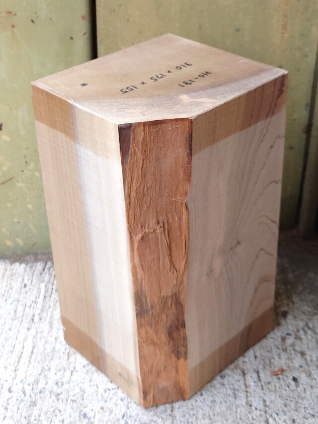 希少な彫刻材、国産の朴ホウノキです。【長さ】310、【幅】175、【厚み】155。