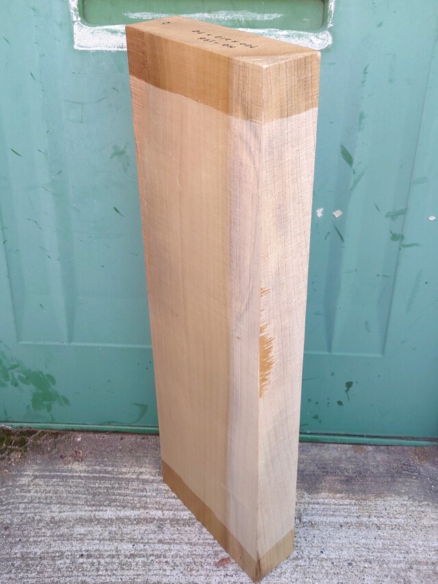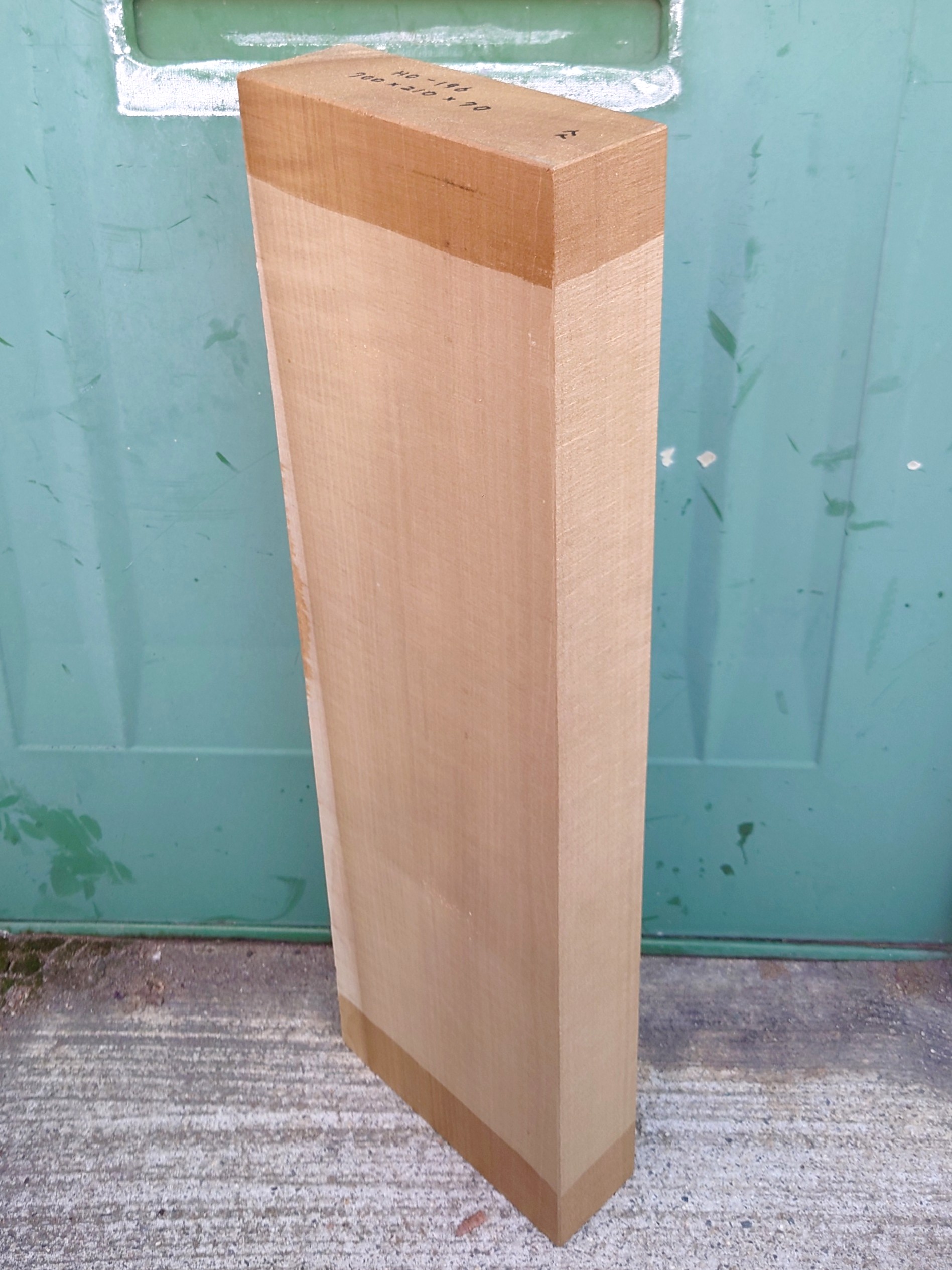 希少な彫刻材、国産の朴ホウノキです。【長さ】700、【幅】210、【厚み】70。 【天然乾燥材】、【節】なし、【反り】なし、【割れ】なし。 木口面に割れどめが塗ってあります。削れば取れます。