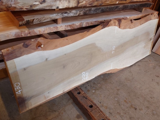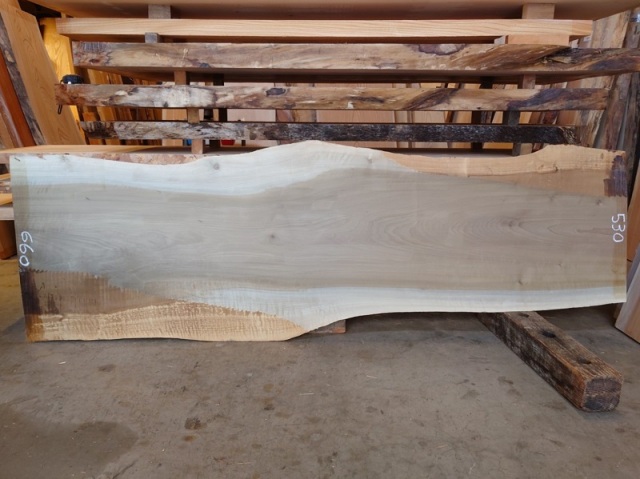 希少な国産の朴ホウノキの天然耳付板です。看板に最適です。【長さ】2120、【木表幅】430~510~570、【木裏幅】530~660【厚み】47。 【天然乾燥材】、【節】なし、【反り】ほとんどなし、【割れ】なし。表面は【電気カンナ加工済】です。多少段差があり、厚みのムラも数ミリあります。詳細画像や詳細寸法がご希望の場合、また表面仕上げ加工やテーブル、看板製作をご希望の場合はお問い合わせよりご連絡いただけましたらお見積りさせていただきます。