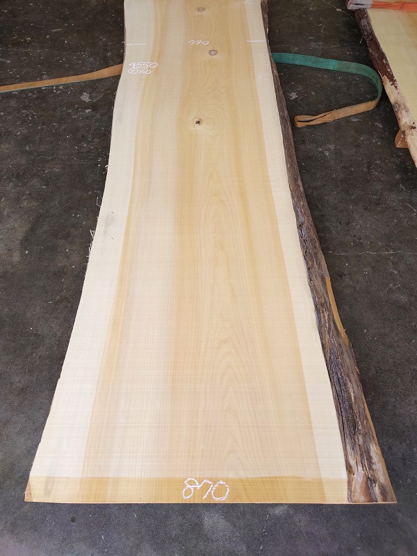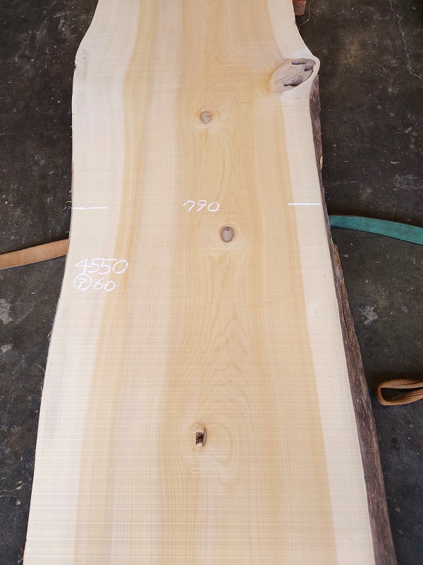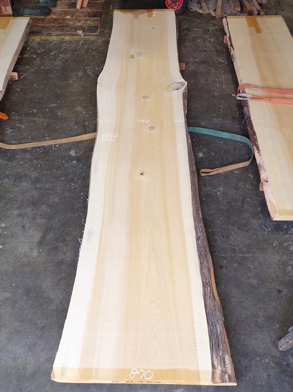 【長さ】4550、【木表幅】770~790~870、【木裏幅】810~990、【厚み】60。