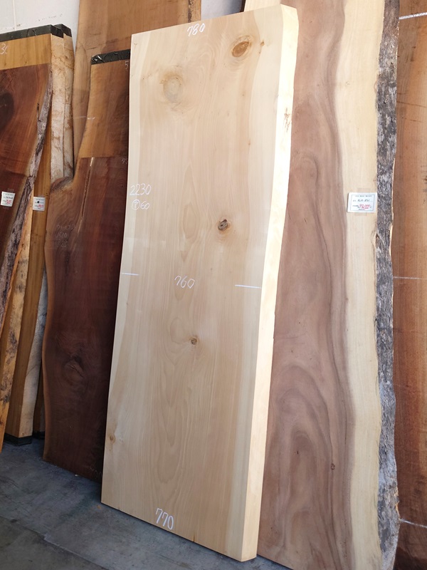 【長さ】2230、【木表幅】780~760~770、【木裏幅】840~850、【厚み】60。
