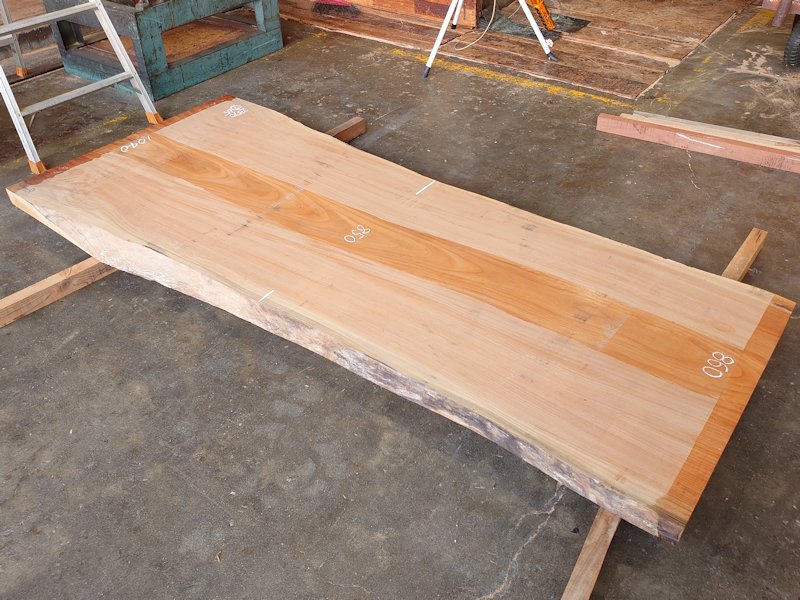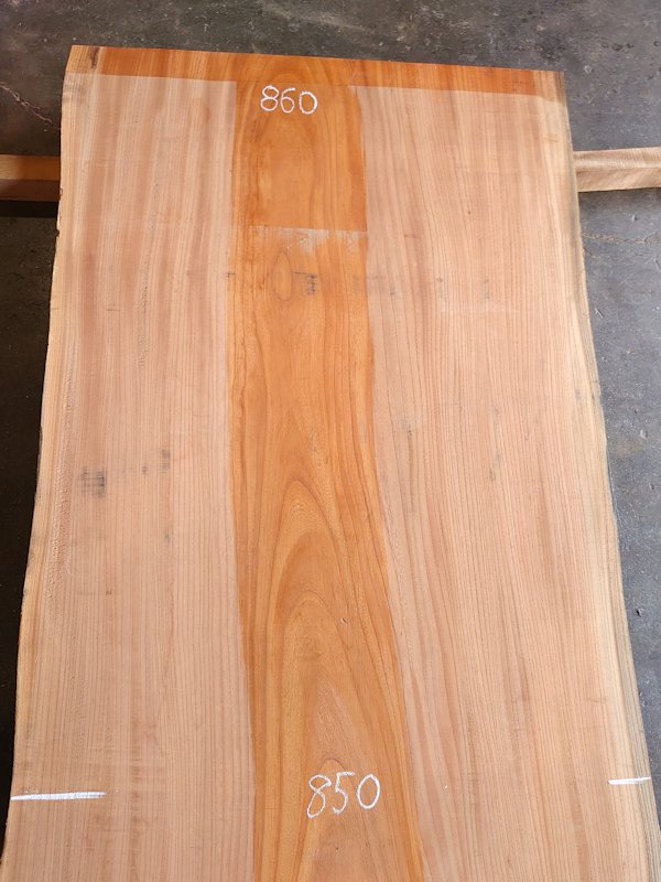 長さ2370、木表幅860~850~1040、木裏幅860~1040、厚み65