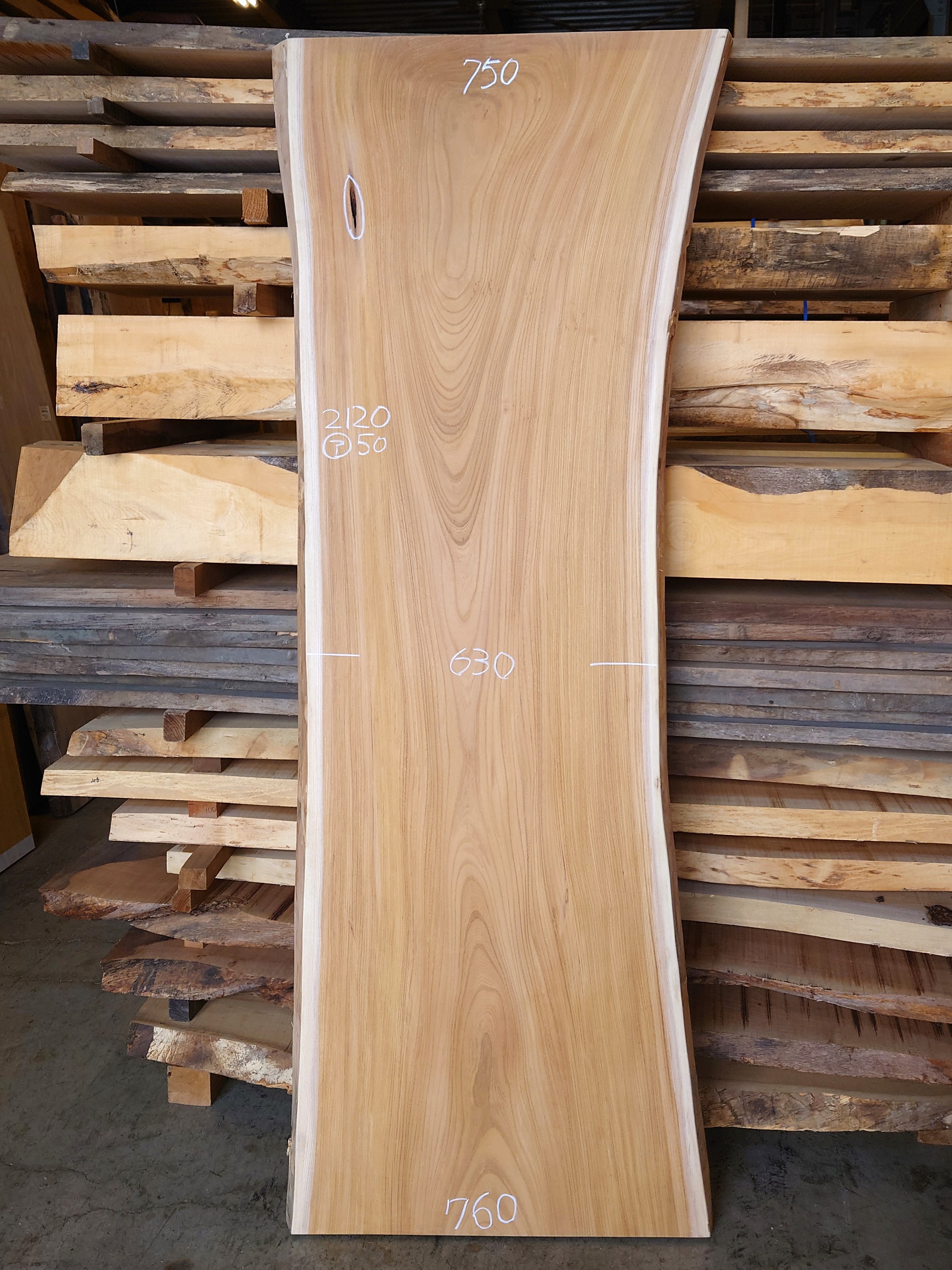 【長さ】2120、【木表幅】750~630~760、【木裏幅】810~790、【厚み】50。