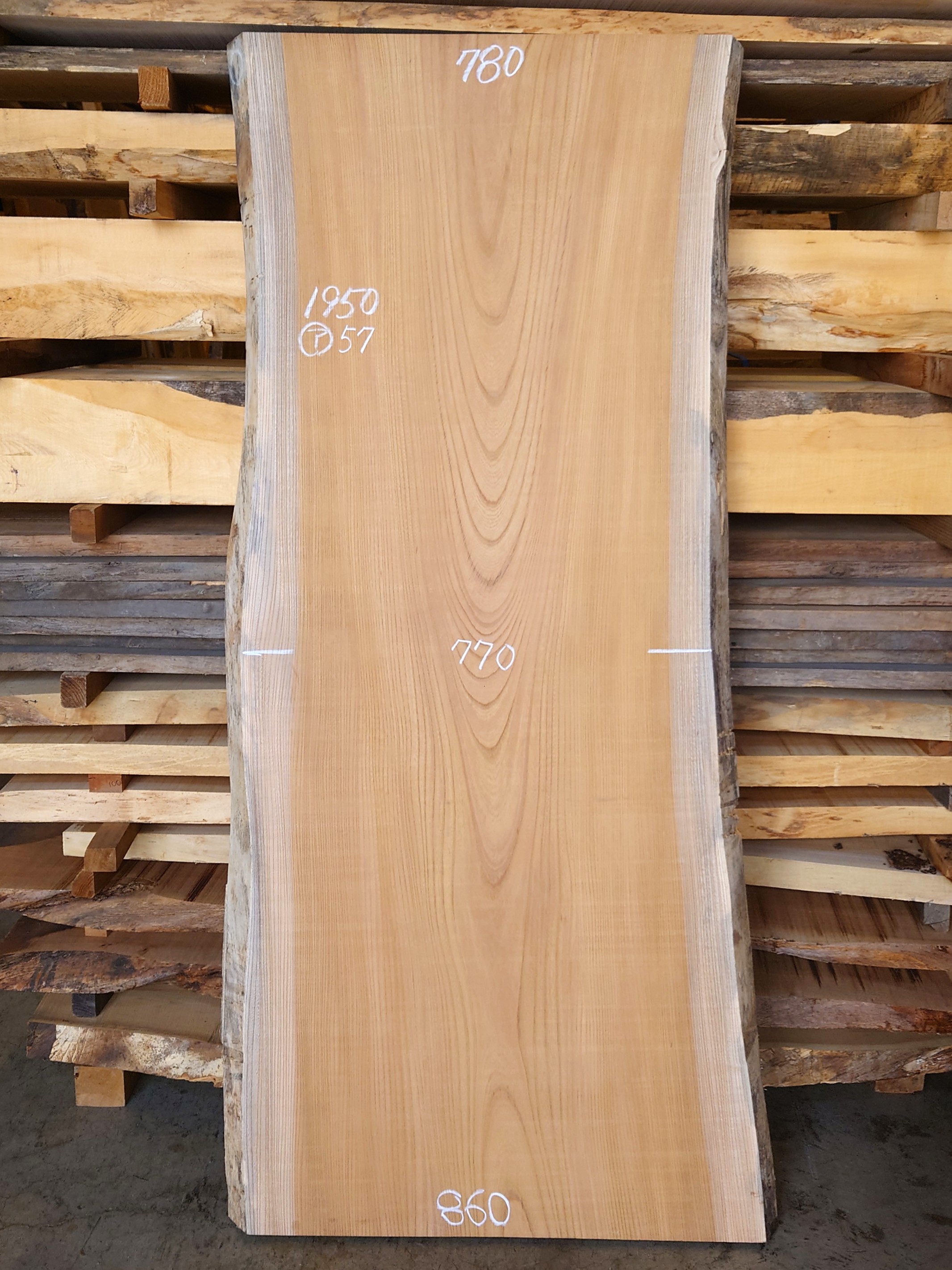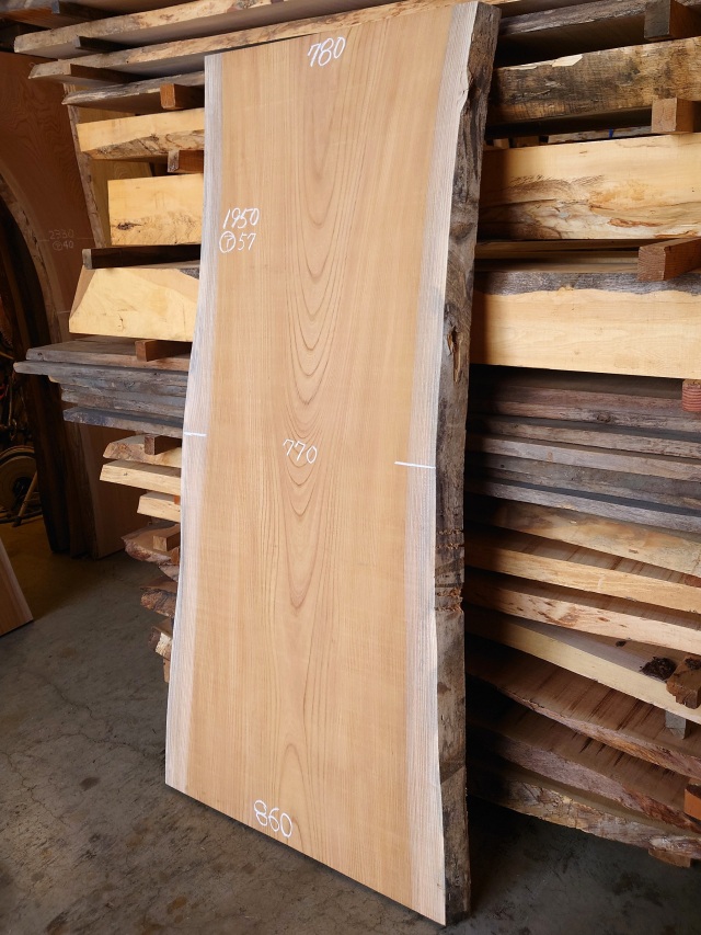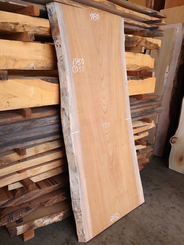 【長さ】1950、【木表幅】780~770~860、【木裏幅】840~930【厚み】57。