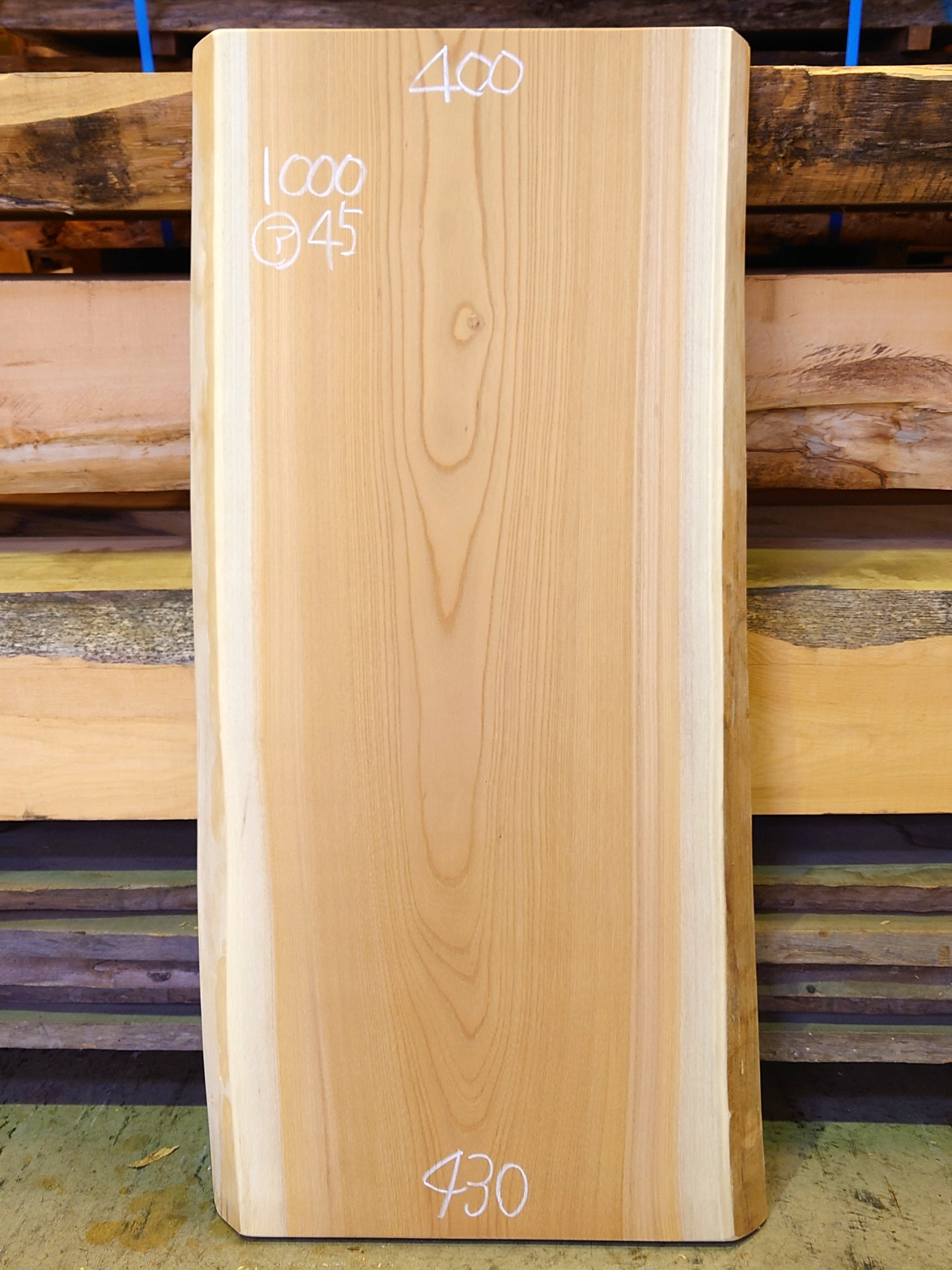 【長さ】1000、【木表幅】400~430、【木裏幅】440~490、【厚み】45。