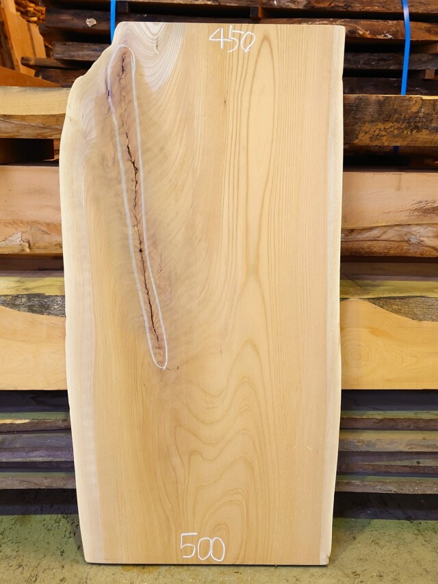 きれいな木目のケヤキ看板用です。サンダー仕上げ加工済ですのですぐにお使いいただけます。【長さ】1100、【木表幅】260~410、【木裏幅】450~500、【厚み】40。 【天然乾燥材】、【反り】ほとんどなし、【節】なし、【割れ】裏面割れあり、オモテ面小さい傷あり。 【サンダー仕上げ加工済】です。若干厚みのムラがございます。テーブル用にお使いの方はもう少し仕上げ加工が必要です。詳細画像や詳細寸法がご希望の場合、また表面仕上げ加工やテーブル、看板製作をご希望の場合はお問い合わせよりご連絡いただけましたらお見積りさせていただきます。