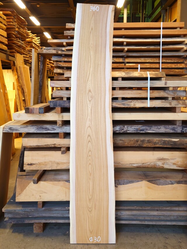 きれいな木目のケヤキ看板用です。プレーナー加工済です。【長さ】2280、【木表幅】270~350、【木裏幅】360~430、【厚み】38。 【天然乾燥材】、【反り】ほとんどなし、【節】なし、【割れ】なし、 【プレーナー加工済】です。若干厚みのムラがございます。テーブル用にお使いの方はもう少し仕上げ加工が必要です。詳細画像や詳細寸法がご希望の場合、また表面仕上げ加工やテーブル、看板製作をご希望の場合はお問い合わせよりご連絡いただけましたらお見積りさせていただきます。