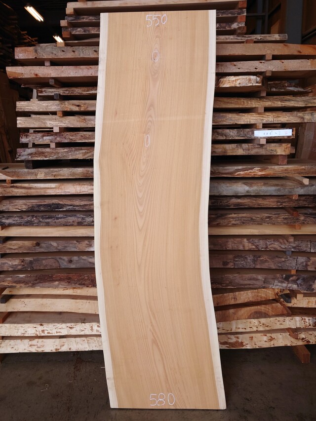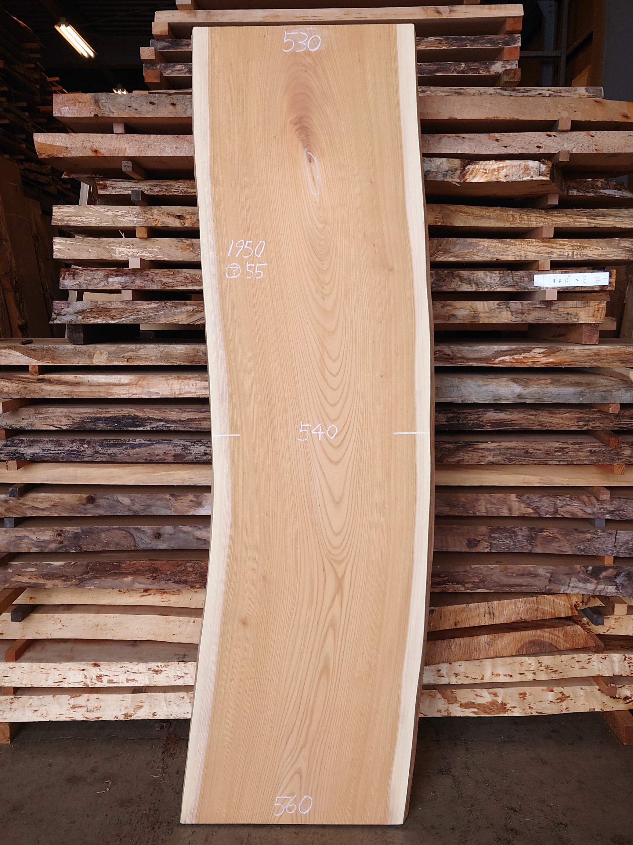 【長さ】1950、【木表幅】530~540~560、【木裏幅】550~580、【厚み】55。(厚み均一ではありません)