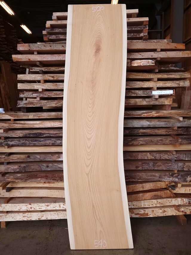 【長さ】2100、【木表幅】450~490~500、【木裏幅】500~540、【厚み】53。(厚み均一ではありません)