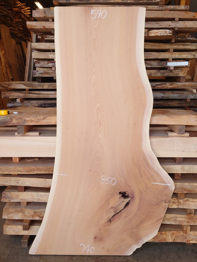 【長さ】1680、【木表幅】510~830~730、【木裏幅】590~850~740、【厚み】44。(厚み均一ではありません)