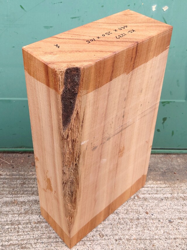 彫刻材人気NO.1の楠です。【長さ】440、【幅】250、【厚み】105。 【半乾燥材】です。【節】なし、【反り】なし、【割れ】なし。角にクサレあります。 木口面に割れ止めが塗ってあります。削れば取れます。