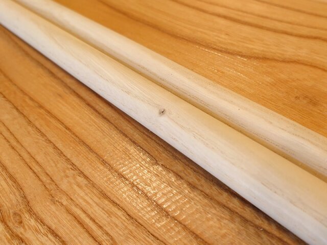 国産栗の丸棒バチ用です。目の通ったキレイな材です。450×20丸、2本セットになります。