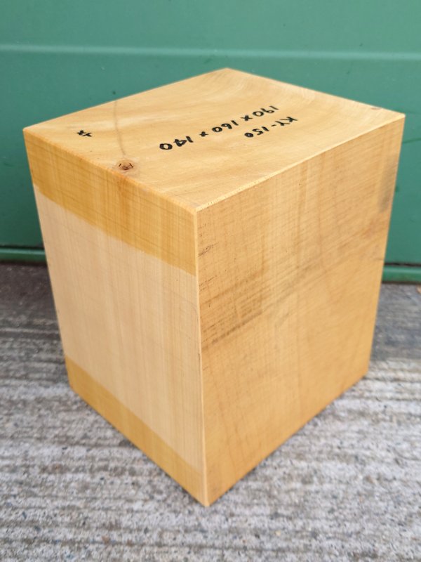 希少な彫刻材、国産の榧かやです。【長さ】190×【幅】160×【厚み】140。 【乾燥材】、【節】なし、【反り】なし、【割れ】なし。 小口面、板目面に割れ止めを塗ってあります。削れば取れます。