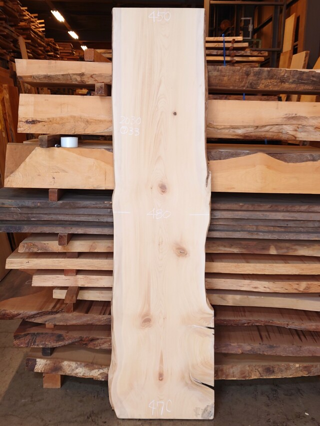 【長さ】2030、【木表幅】450~480~470、【木裏幅】470~490、【厚み】33。
