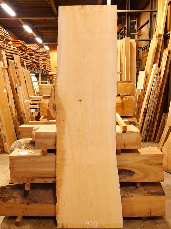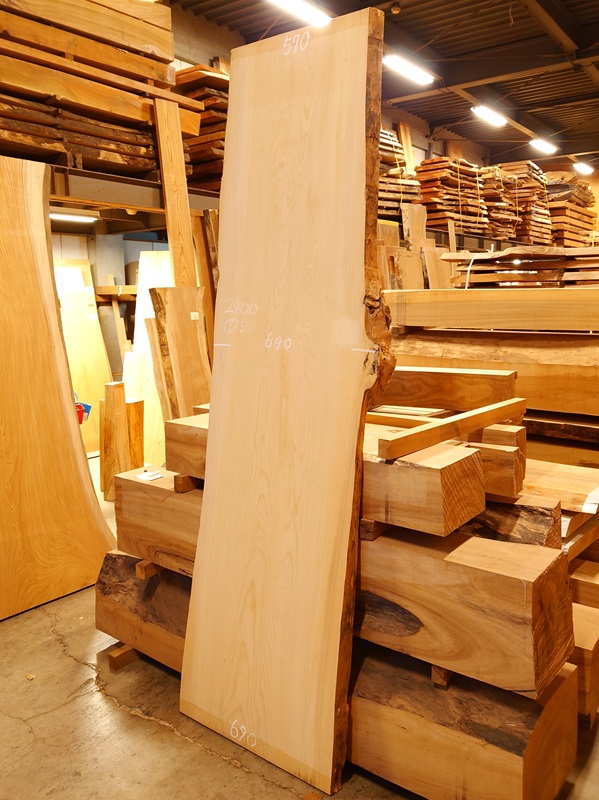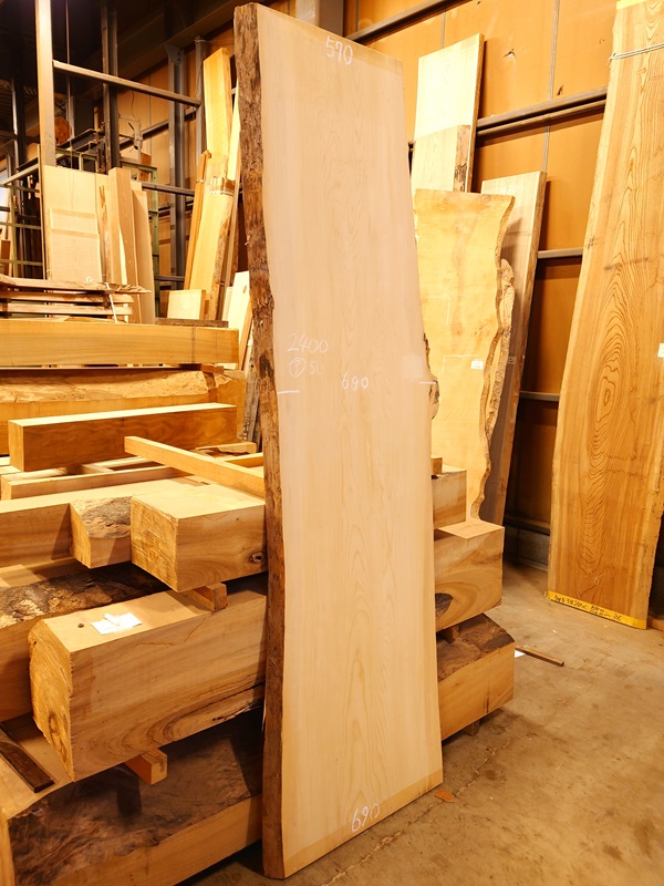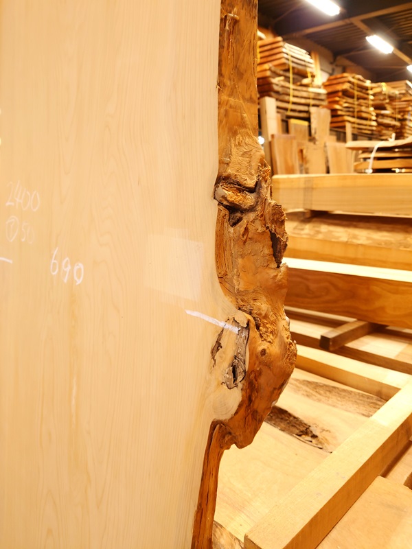 希少な国産の榧かやの天然耳付き板です。看板やカウンターに最適です。【長さ】2400、【木表幅】570~690~690、【木裏幅】680~720、【厚み】50。