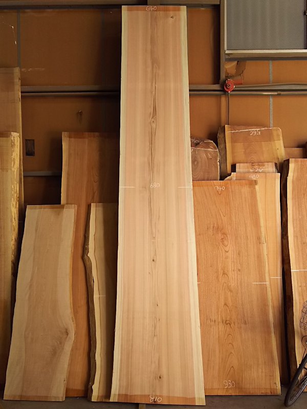 長さ3750、木表幅640~680~810、木裏幅650~810、厚み58