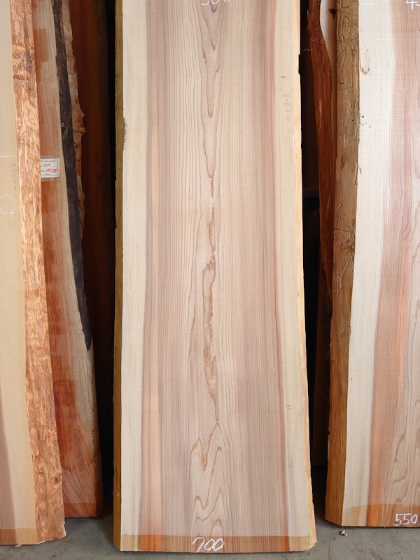 長さ3950、木表幅550~580~700、木裏幅610~720、厚み52