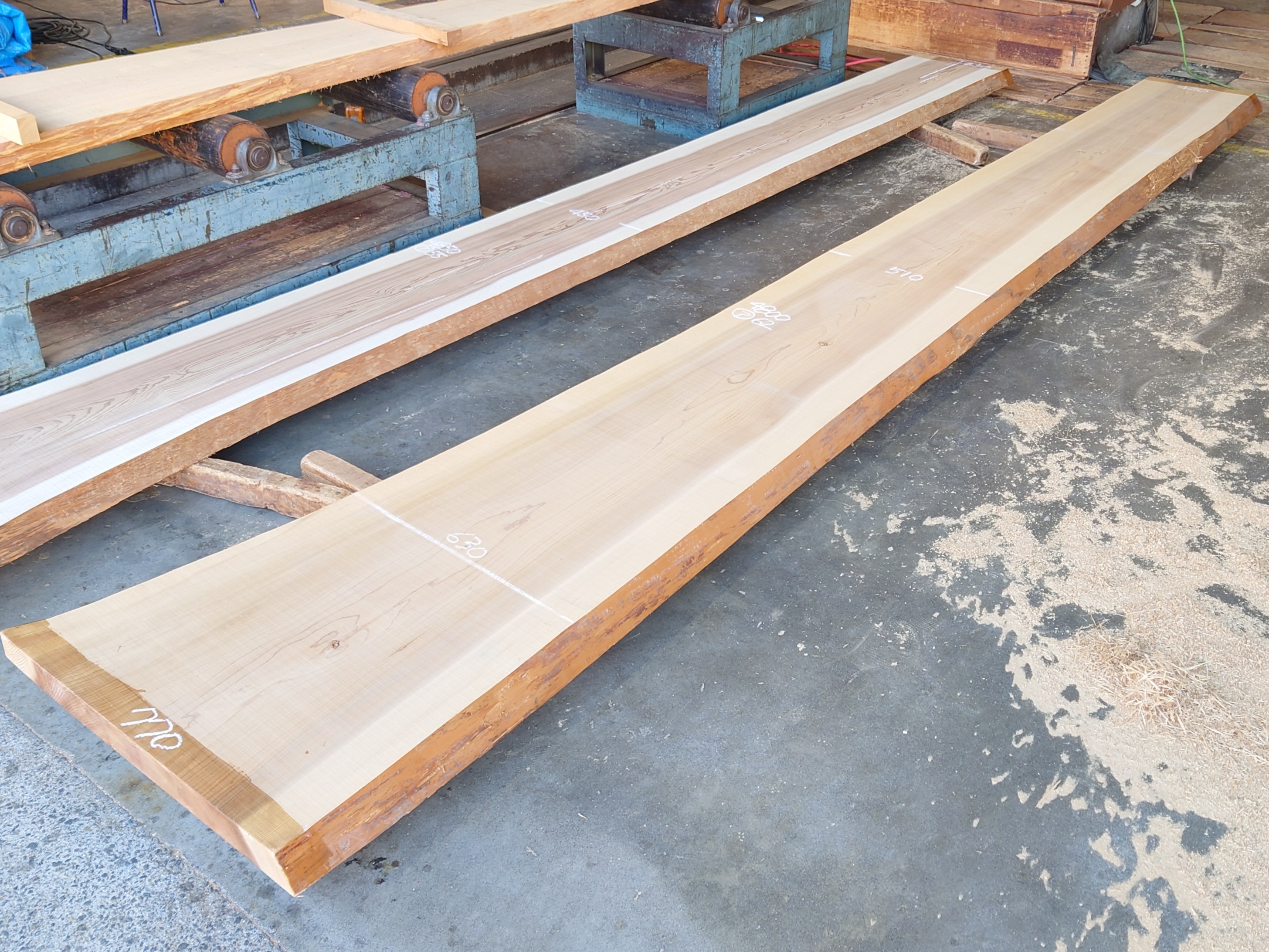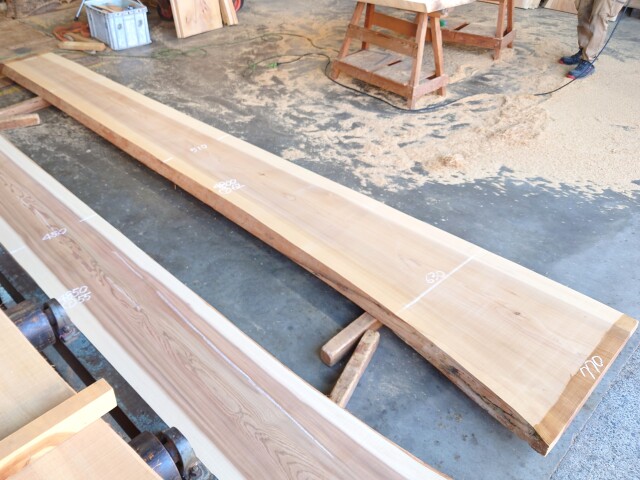 【長さ】4800、【木表幅】420~510~770、【木裏幅】510~810、【厚み】62。
