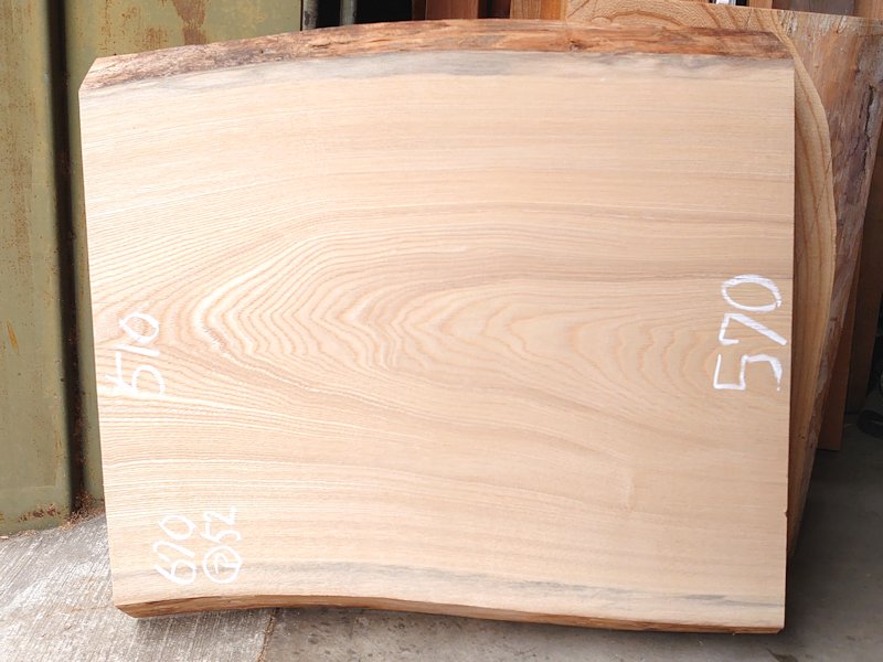 長さ670、木表幅510~570、木裏幅580~630、厚み52
