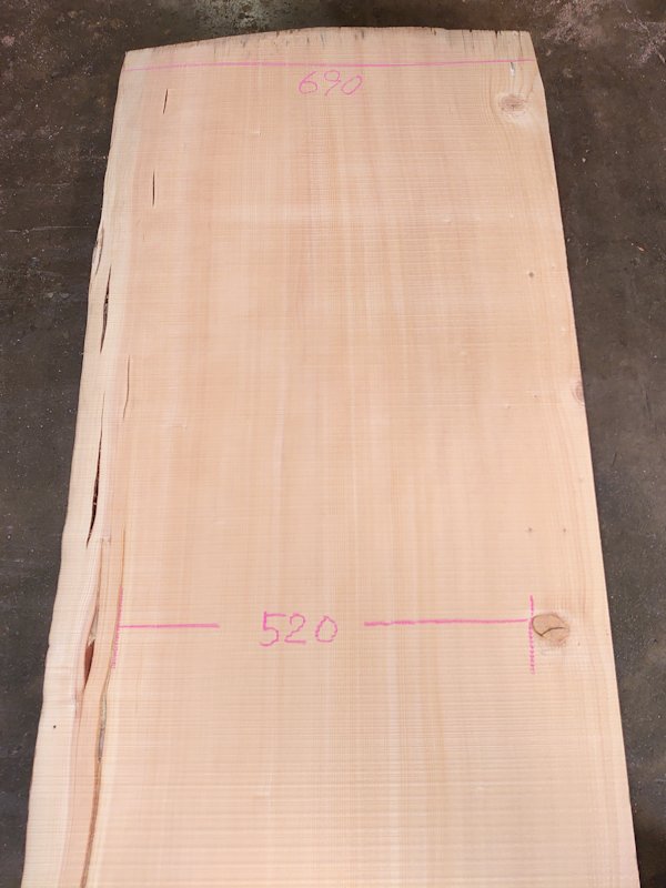 SP-111 スプルース 片耳付き柾目節有カウンター 4150×700 天然乾燥材